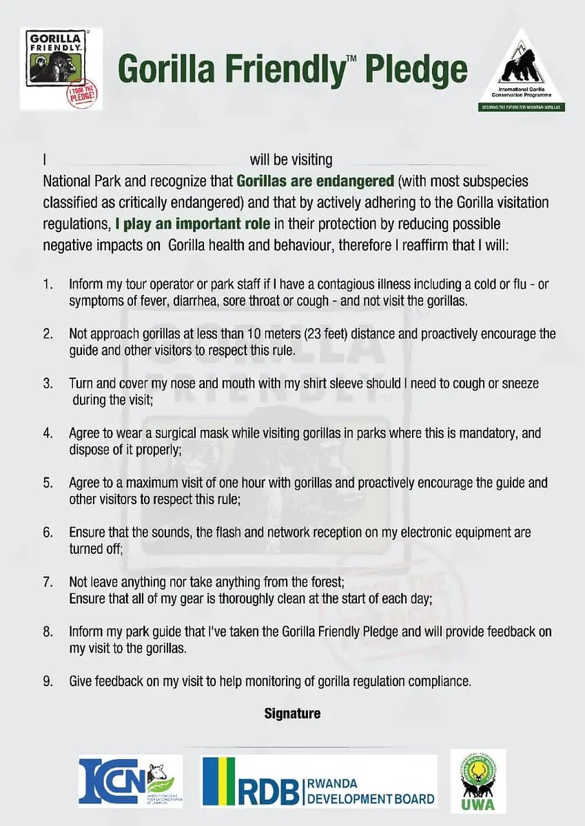 Gorillas sind dem Menschen genetisch ähnlich und daher anfällig für menschliche Krankheiten, einschließlich häufiger Viren und Bakterien, die, wenn sie auf Gorillas übertragen werden, zum Tod führen können. Indem Sie Ihre Krankheit Ihrem Reiseveranstalter oder Parkpersonal selbst melden und keine Gorillas besuchen, verringern Sie das Risiko einer Krankheitsübertragung auf die Gorillas.